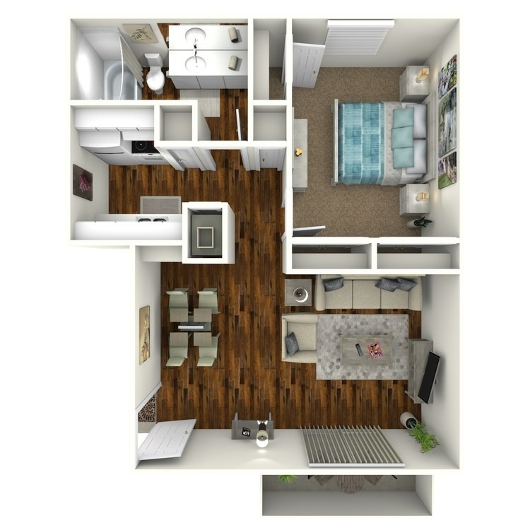 Modelo de apartamento: A-1$7501 Dormitorio, 1 Baño, 670 sq ftNo Disponible![]()