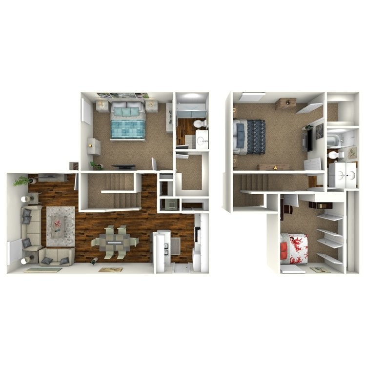 Modelo de apartamento: C Townhome$1,2253 Dormitorios, 2 Baños, 1344 sq ftNo Disponible![]()