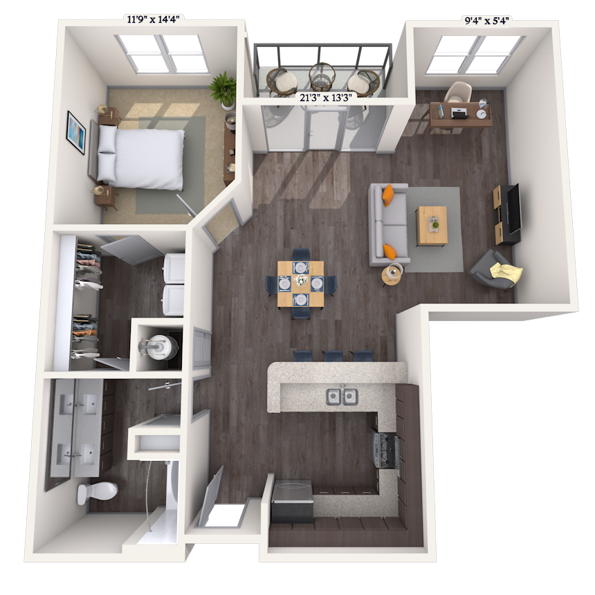Traditional 1x1 662-740 SF - Floorplan 8 Apartment Unit: 464Apartment Model: Traditional 1x1 662-740 SF$2,0551 Bedroom, 1 Bath, 662 sq ftAvailable Now![]()