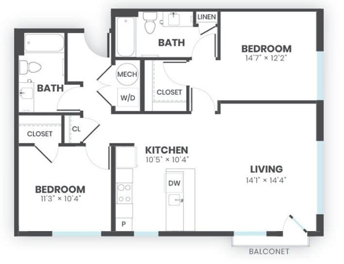 Journey - Plano 1 Unidad de apartamento: 1305Modelo de apartamento: Journey$1,4451 Dormitorio, 1 Baño, 695 sq ftDisponible February 4, 2026Harbor