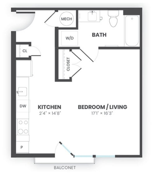 Modelo de apartamento: LocusLlame para PreciosEstudio, 1 Baño, 500 sq ftNo Disponible![]()