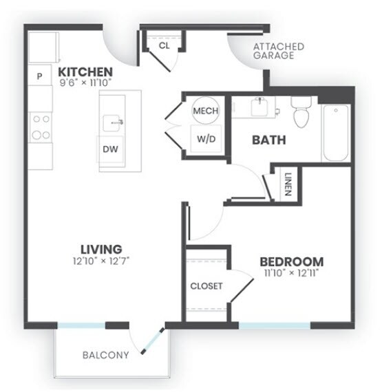1 Dormitorio, 1 Baño, 695 pies²Disponible February 4, 2026Galería del Modelo