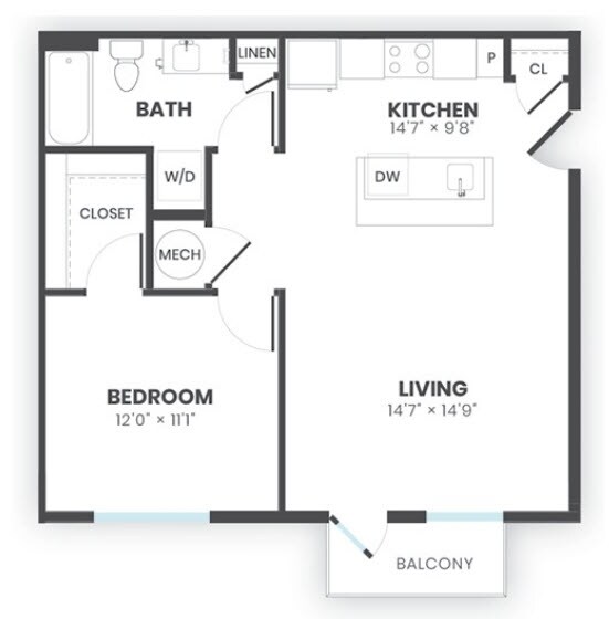 1 Dormitorio, 1 Baño, 713 pies²Disponible January 7, 2026El más grandeEsta opción tiene las unidades más grandes para este modeloGalería del Modelo