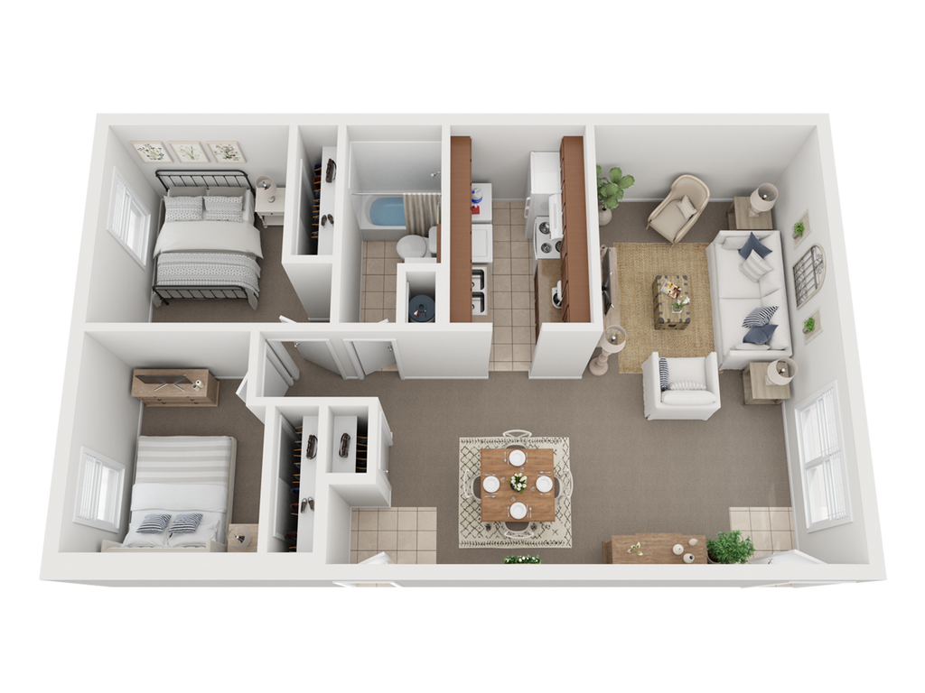 Modelo de apartamento: 2 Bedroom 1 Bath$9252 Dormitorios, 1 Baño, 700 sq ftDisponible AhoraFotos3D Tours![]()