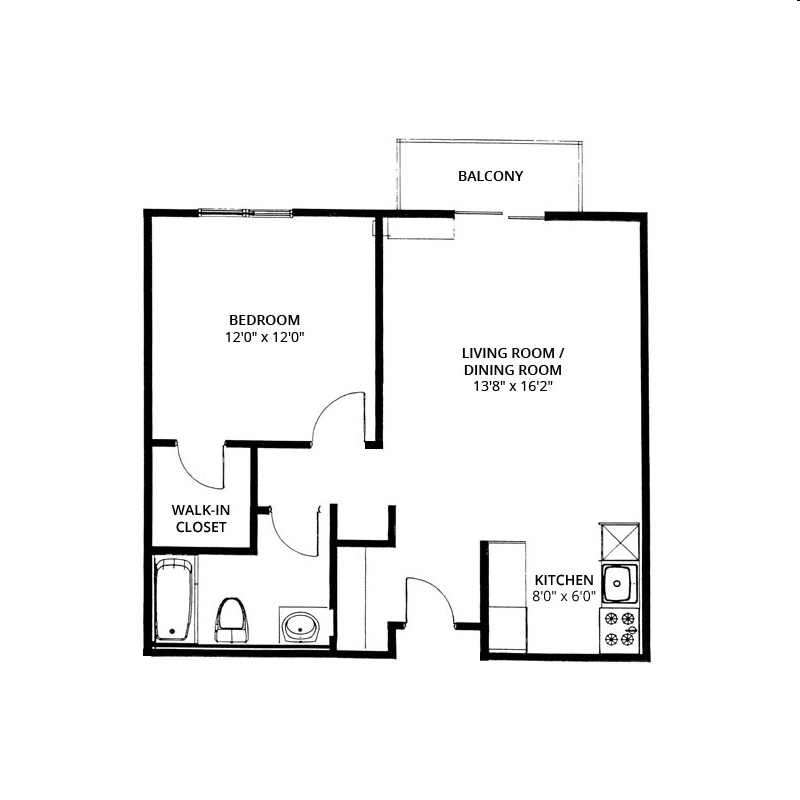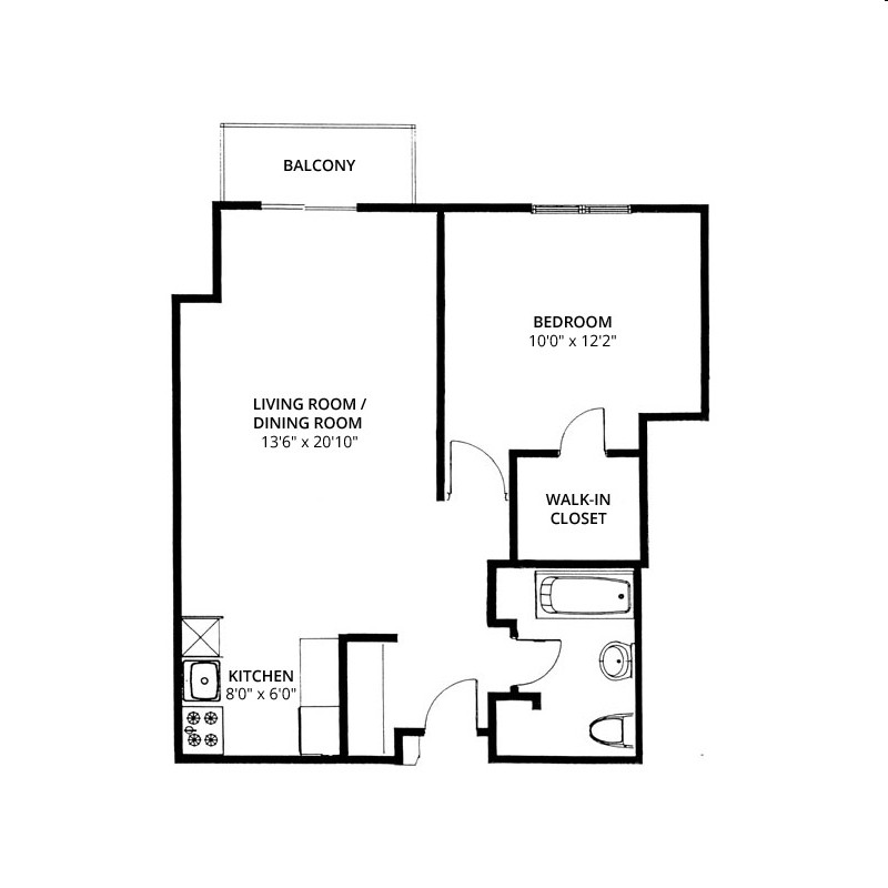 1 Dormitorio, 1 Baño, 645 pies²Disponible Oct 13Galería del Modelo