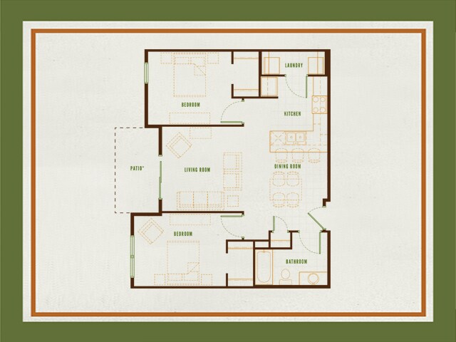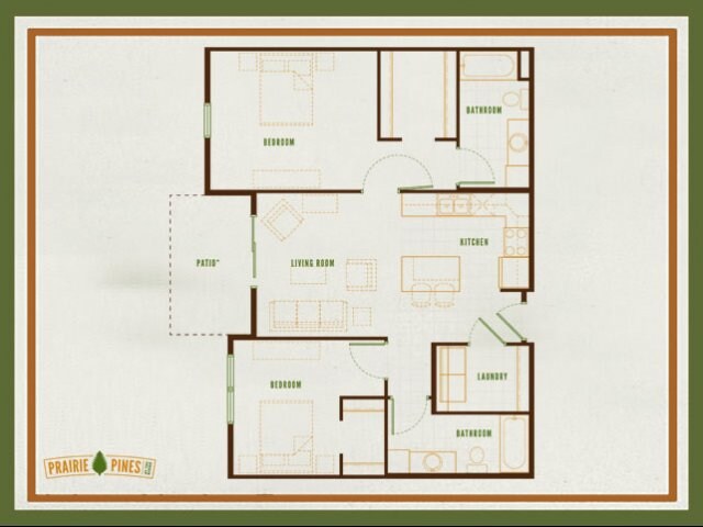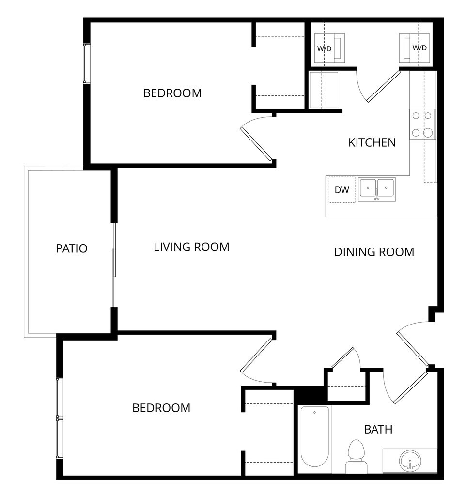 Modelo de apartamento: 2x1 Bristlecone2 Dormitorios, 1 Baño, 896 sq ftDisponible Ahora![]()
