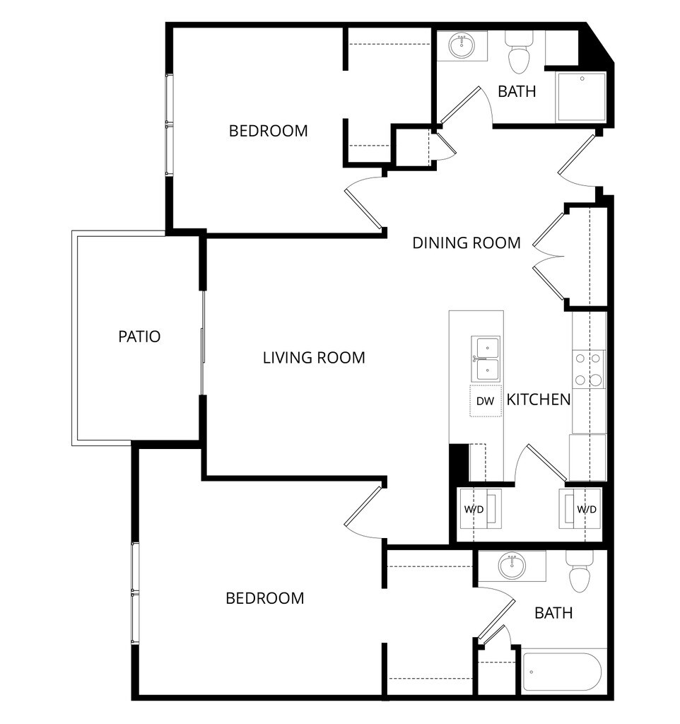 Modelo de apartamento: 2x2 Torrey2 Dormitorios, 2 Baños, 1064 sq ftDisponible Ahora![]()