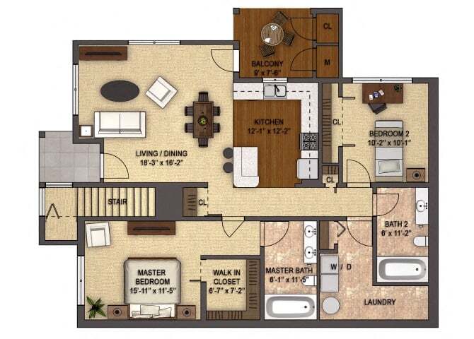 Modelo de apartamento: Cedarwood 2nd FloorDesde $1,6661 Dormitorio, 1.5 Baños, 1118 sq ftDisponible December 18, 2025![]()