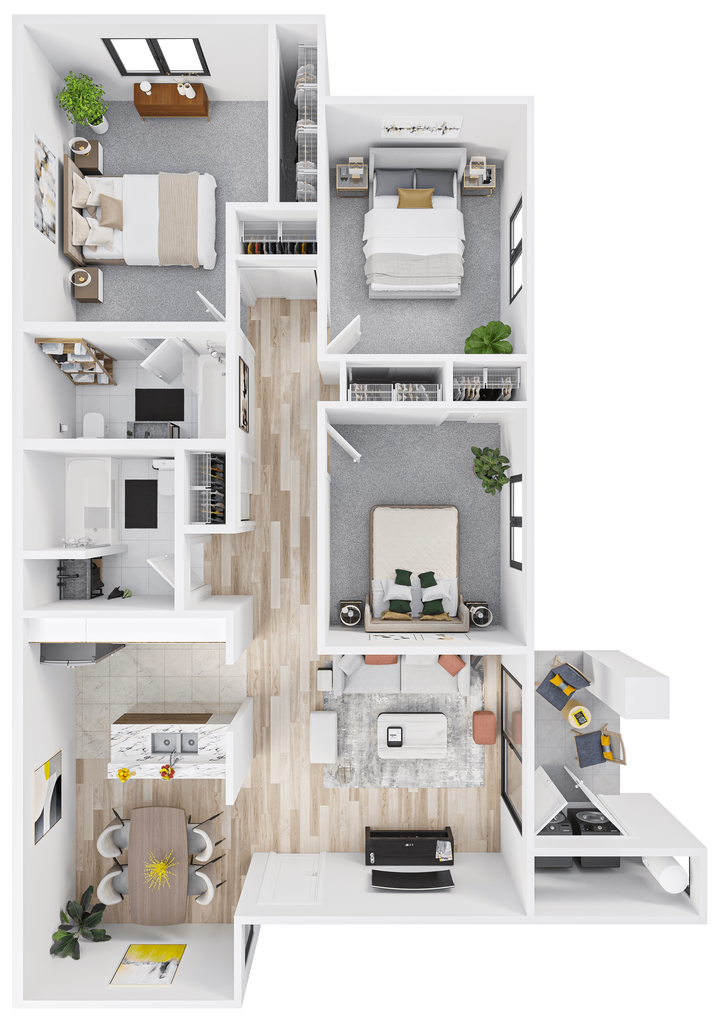 3 Dormitorios, 2 Baños, 1197 pies²Precio Mensual TotalDisponible AhoraGalería del Modelo