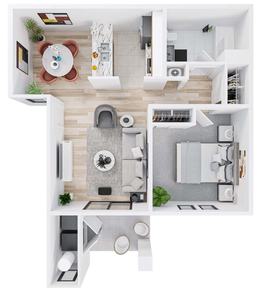 1 Dormitorio, 1 Baño, 715 pies²Precio Mensual TotalDisponible AhoraGalería del Modelo