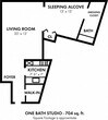 Estudio, 1 Baño, 704 pies²Galería del Modelo