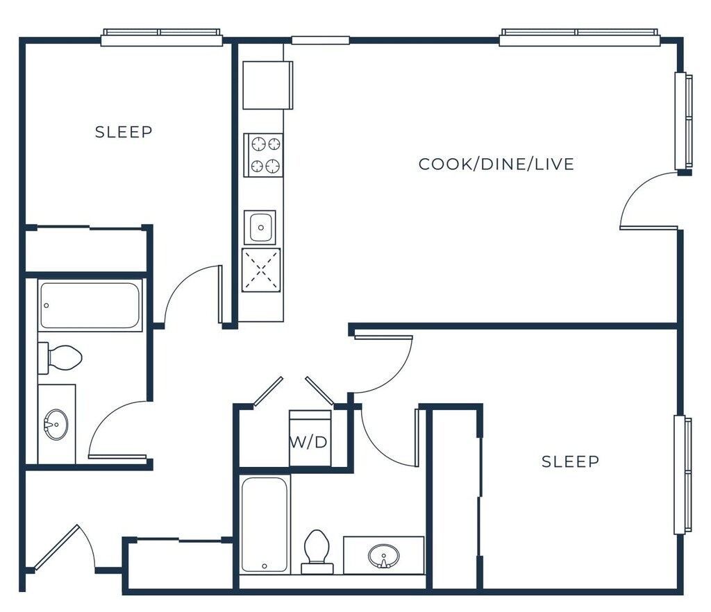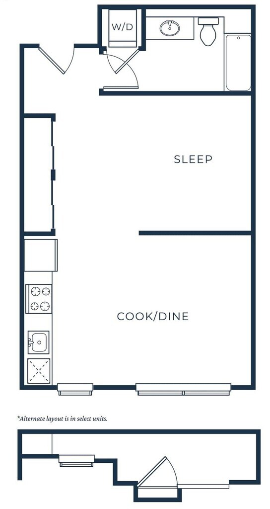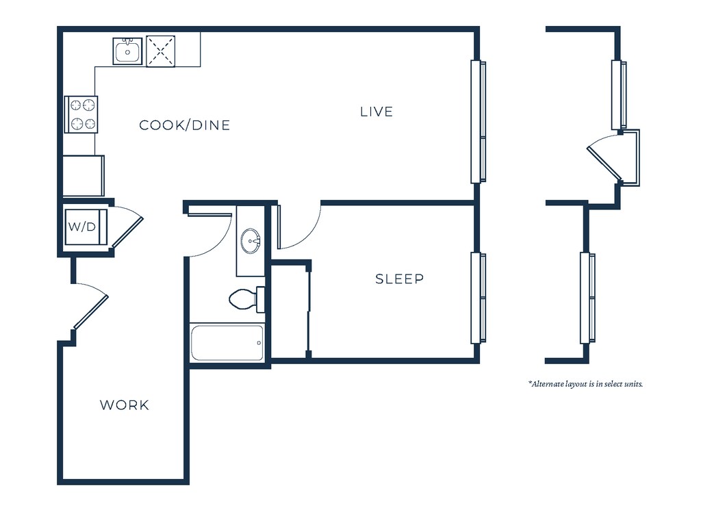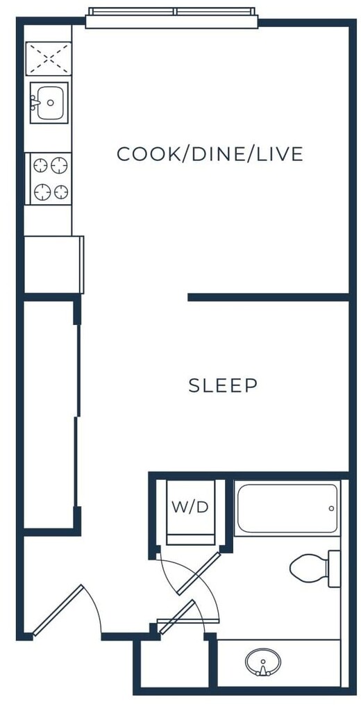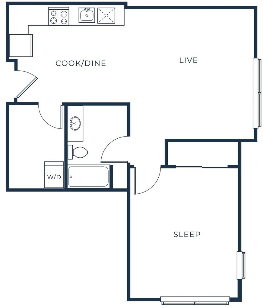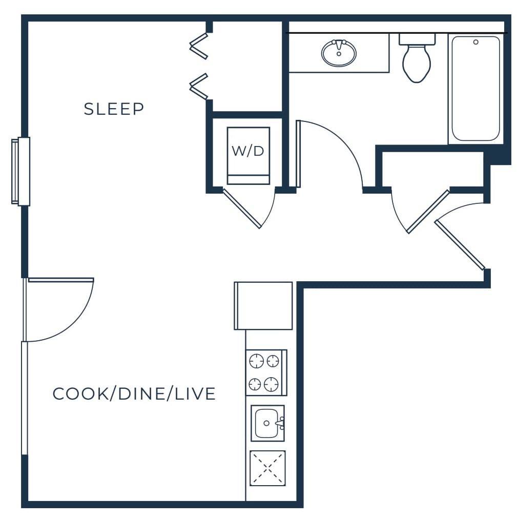 Estudio, 1 Baño, 485 pies²Disponible AhoraEl más grandeEsta opción tiene las unidades más grandes para este modeloGalería del Modelo