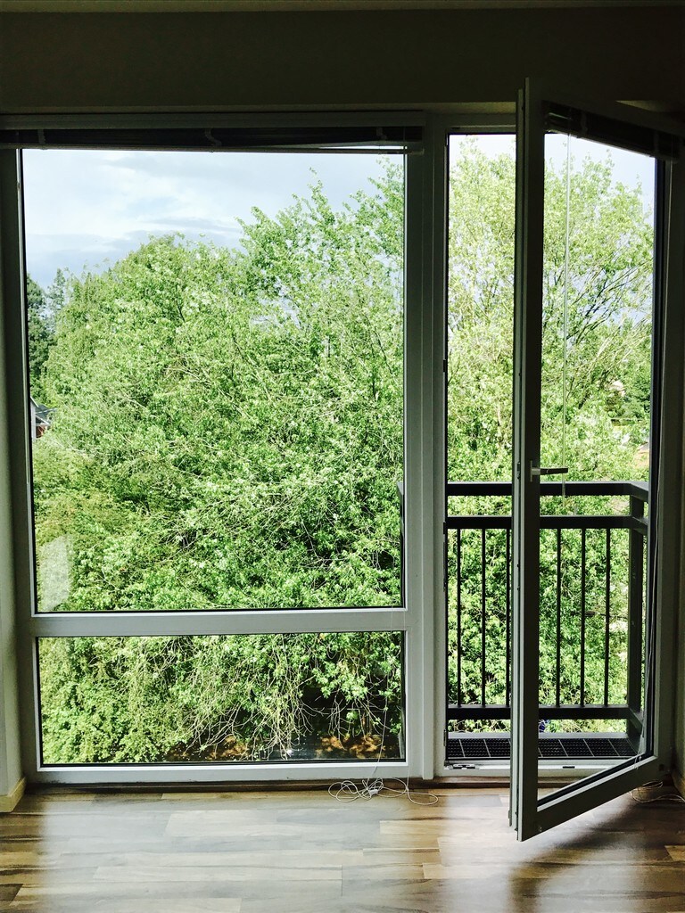 - Ventanas grandes que se inclinan y giran o puerta de balcón