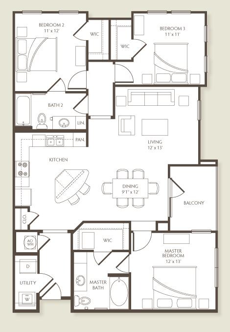 Modelo de apartamento: B1Desde $1,6362 Dormitorios, 2 Baños, 1175 sq ftDisponible Ahora![]()