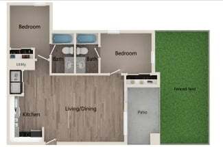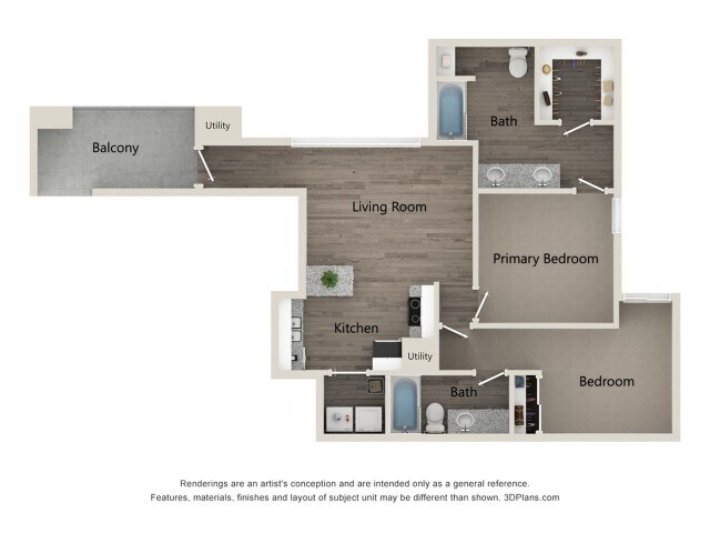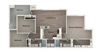 Modelo de apartamento: A3Desde $1,3501 Dormitorio, 1 Baño, 760 sq ftDisponible Ahora![]()