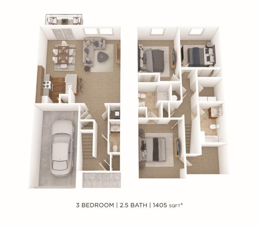 Modelo de apartamento: Three Bedroom 2.5 Bath TownhomeDesde $1,9403 Dormitorios, 2.5 Baños, 1334 sq ftDisponible January 6, 2026![]()