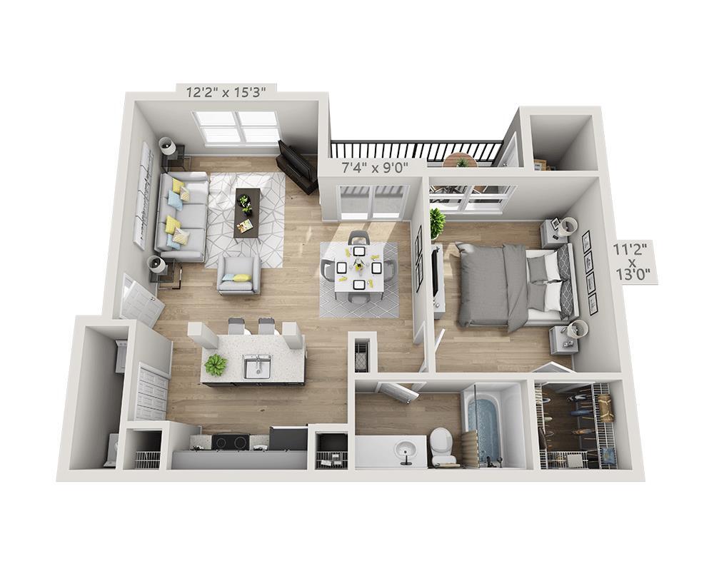 1 Dormitorio, 1 Baño, 881 pies²Disponible AhoraGalería del Modelo