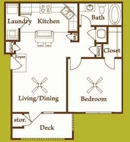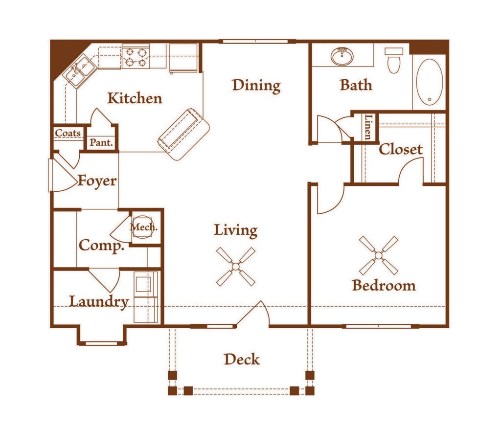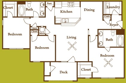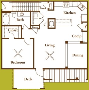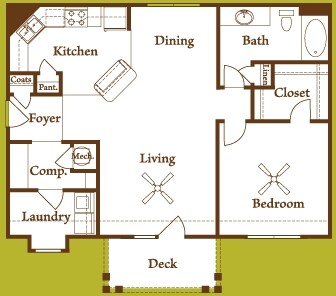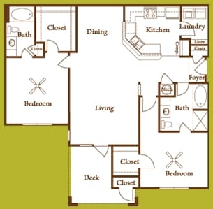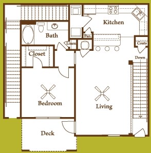 Modelo de apartamento: Holly - DeckDesde $1,2681 Dormitorio, 1 Baño, 751 sq ftDisponible Ahora![]()