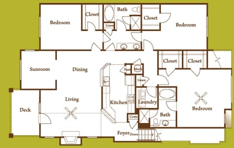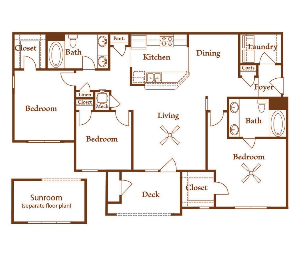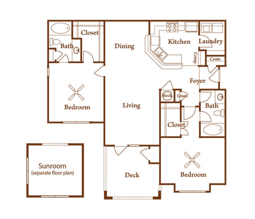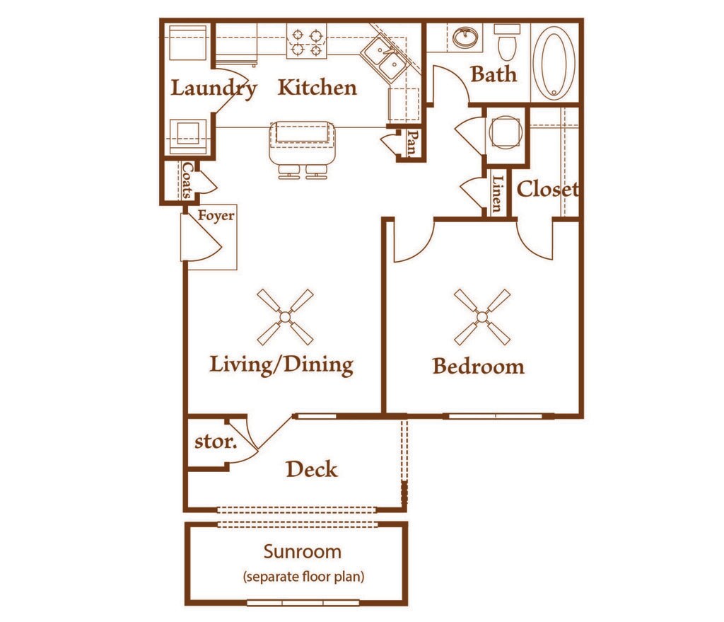 Holly - Sunroom - Plano 1 Unidad de apartamento: 533Modelo de apartamento: Holly - Sunroom$1,3141 Dormitorio, 1 Baño, 871 sq ftDisponible December 18, 2025Laurel