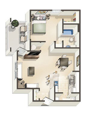Modelo de apartamento: 1C-R8Desde $1,4101 Dormitorio, 1 Baño, 744 sq ftDisponible Ahora![]()