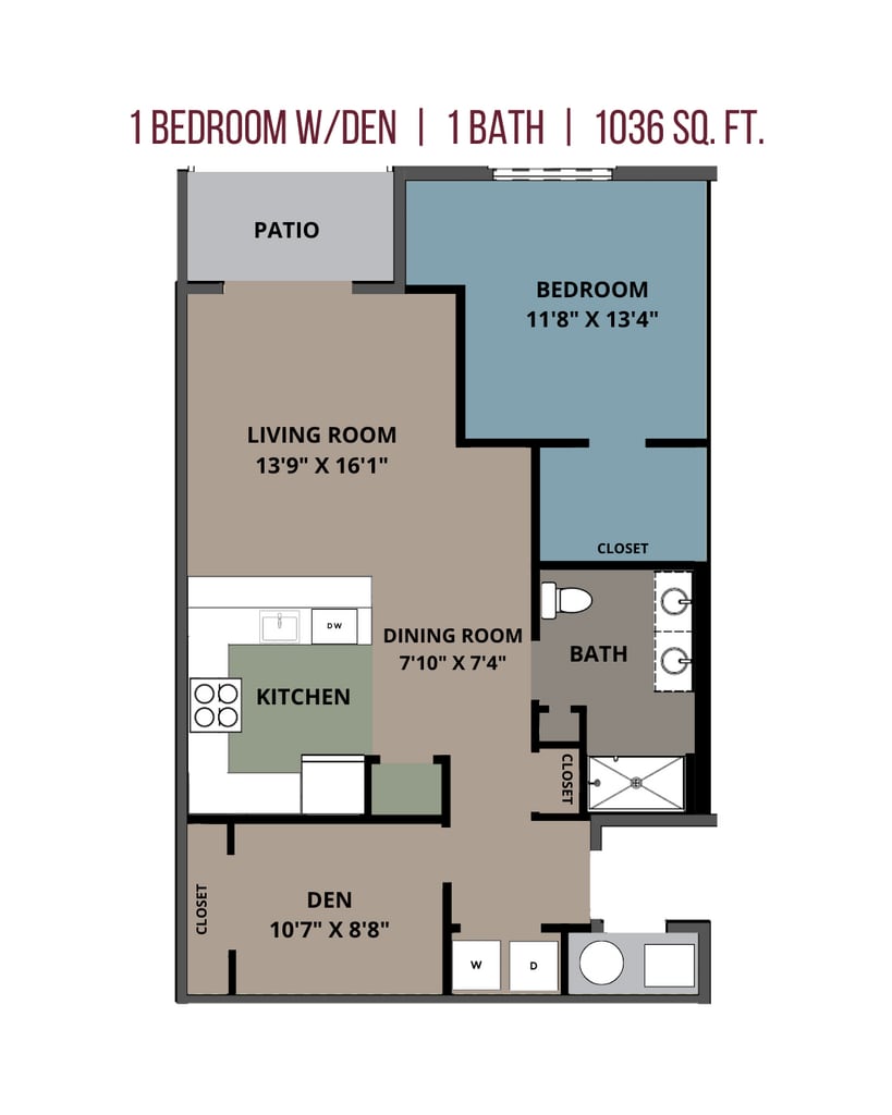 Modelo de apartamento: 1 Bedroom 1 Bathroom DenDesde $1,5801 Dormitorio, 1 Baño, 1036 sq ftDisponible Ahora![]()