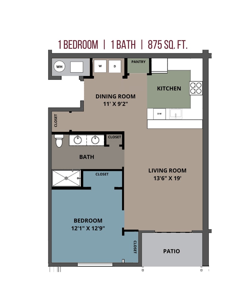 1 Dormitorio, 1 Baño, 875 pies²Disponible AhoraGalería del Modelo