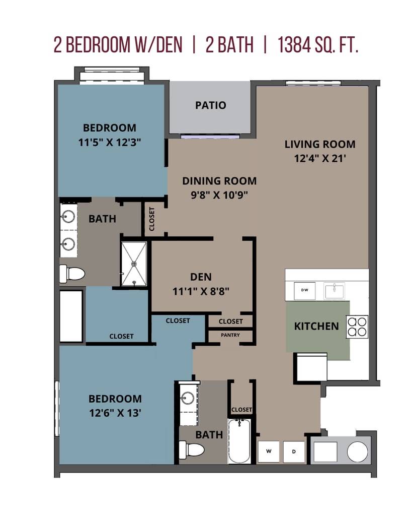 Modelo de apartamento: 2 Bed 2 BathDesde $1,7202 Dormitorios, 2 Baños, 1171-1289 sq ftDisponible Ahora![]()