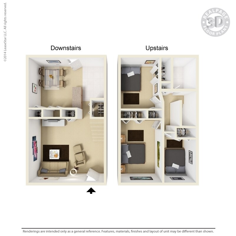 Modelo de apartamento: Three Bedroom TownhouseDesde $2,6043 Dormitorios, 1 Baño, 1080 sq ftDisponible Ahora![]()