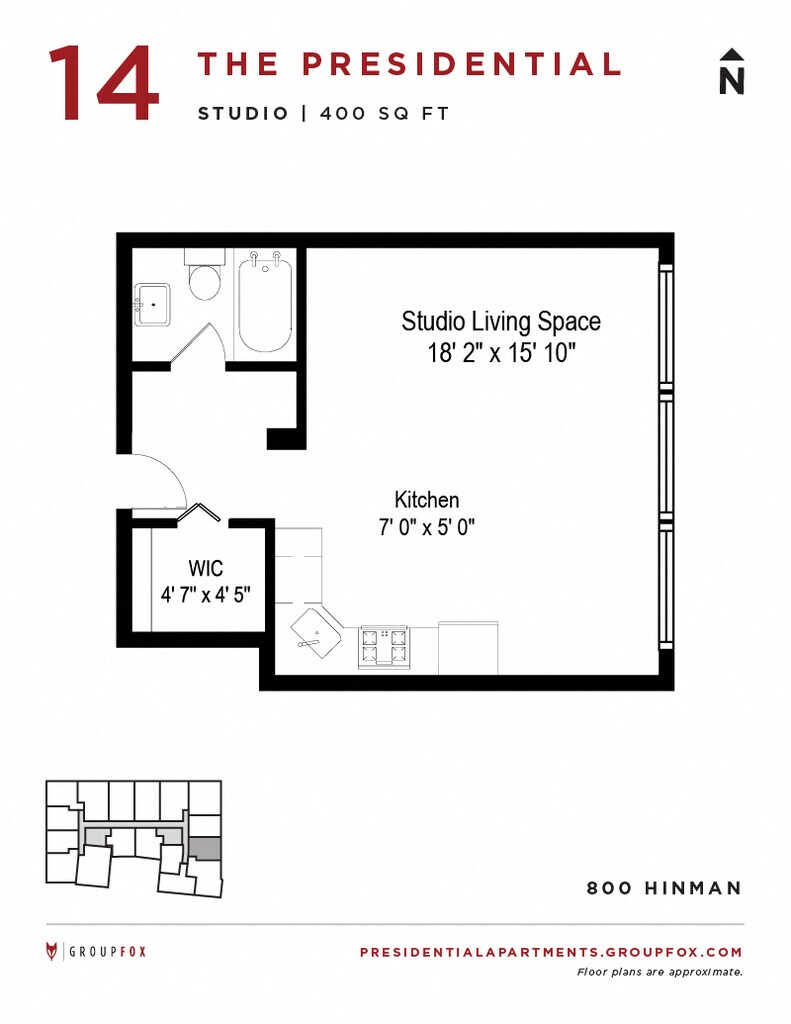 Presidential Apartments se encuentra en el código postal 60202 de Evanston, IL. Esta comunidad está gestionada profesionalmente por Group Fox