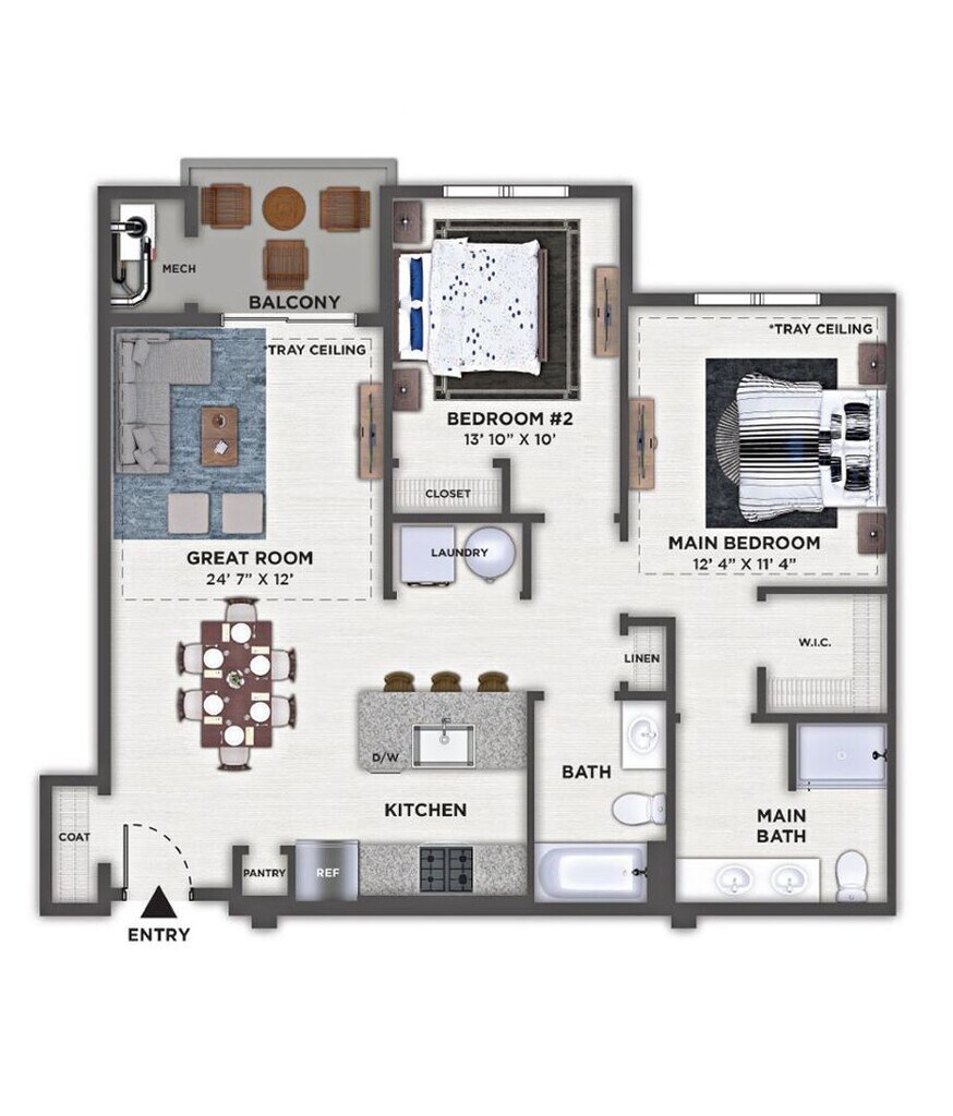 2 Dormitorios, 2 Baños, 968 pies²Disponible AhoraGalería del Modelo