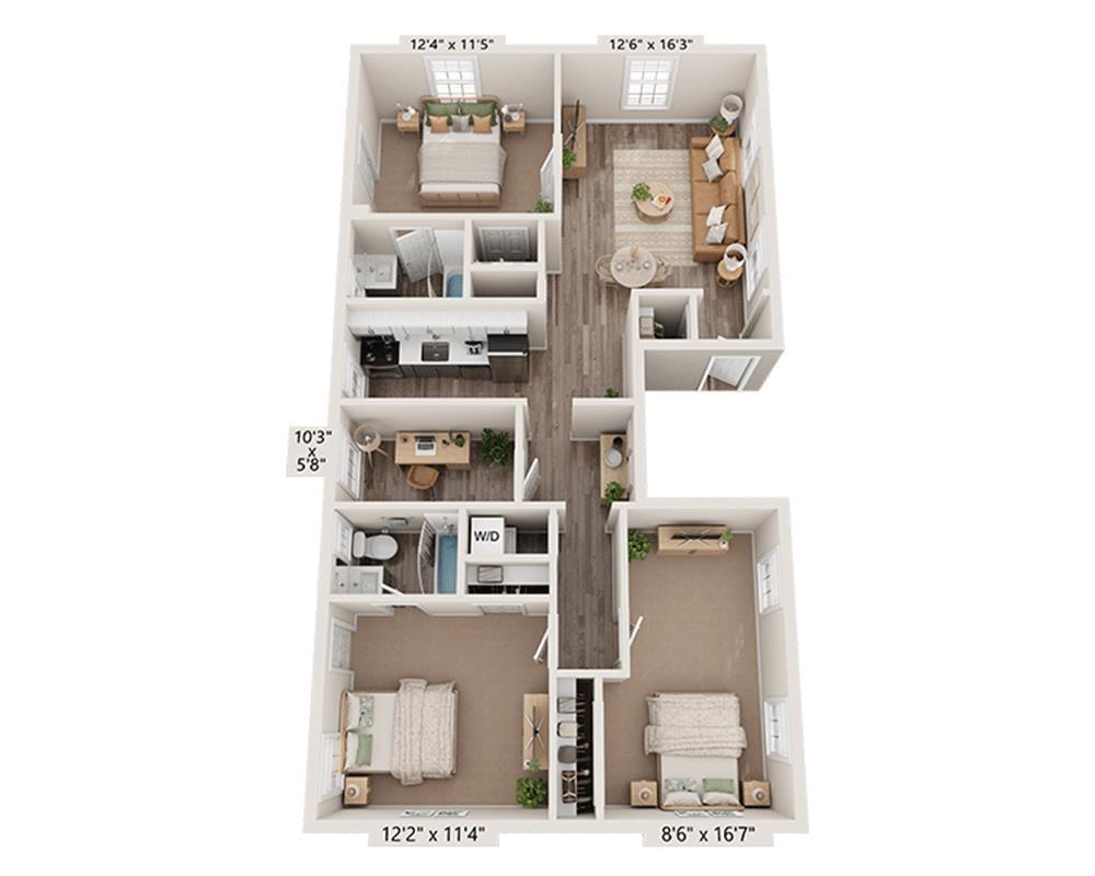 1 Dormitorio, 1 Baño, 669 pies²Disponible AhoraEl más grandeEsta opción tiene las unidades más grandes para este modeloGalería del Modelo