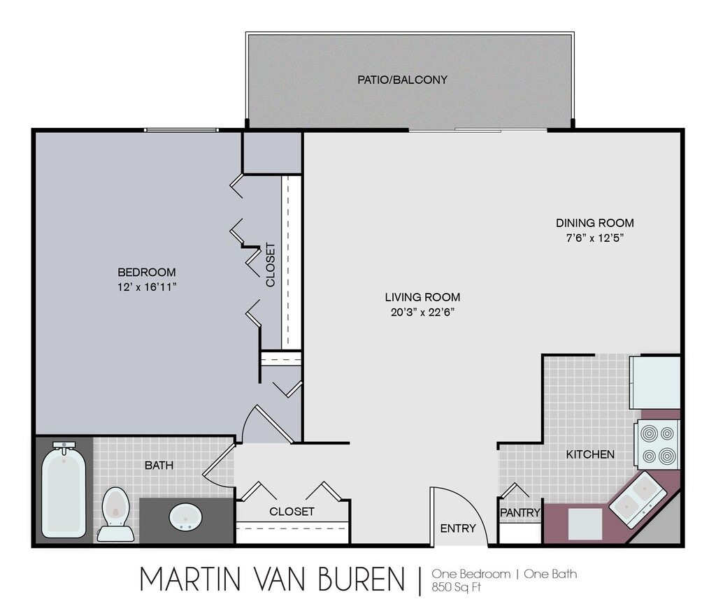 Modelo de apartamento: A Martin Van Buren$1,2001 Dormitorio, 1 Baño, 900 sq ftNo Disponible![]()