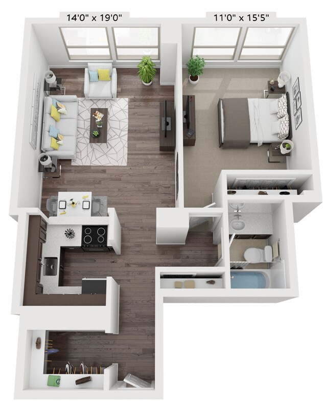 Estudio, 1 Baño, 546 pies²Disponible AhoraGalería del Modelo