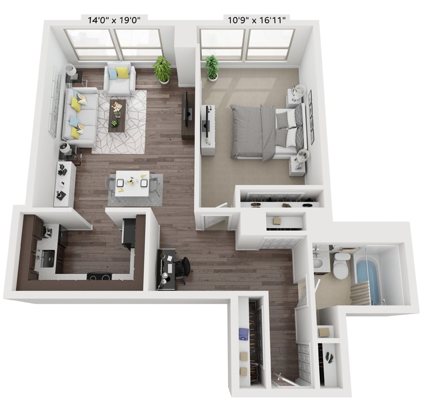 Modelo de apartamento: STUDIO NINEDesde $1,605Estudio, 1 Baño, 546 sq ftDisponible Ahora![]()
