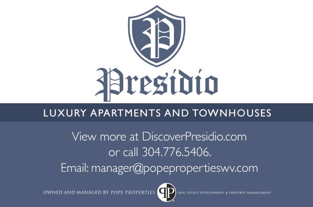 Vida de lujo, comodidad inigualable. Cuando mires los apartamentos y las casas adosadas de Presidio, verás la diferencia. En pocas palabras, obtienes más por menos. Nuestros apartamentos y casas adosadas tienen garajes adjuntos y áreas comunes cerradas. Presidio es un exclusivo complejo privado a solo un minuto en auto de la zona de restaurantes, tiendas y lugares de entretenimiento y a una poca distancia en auto del centro de Charleston, West Virginia. Elige Presidio y descubrirás que esta propiedad se distingue de cualquier otro complejo de apartamentos o casas adosadas de alrededor. Establecemos el estándar para la vida de lujo, descubre mucho más.