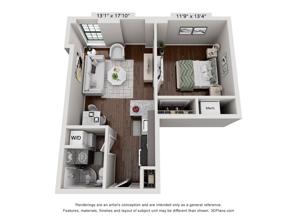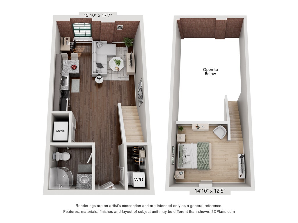 1 Dormitorio, 1 Baño, 500-850 pies²Disponible AhoraGalería del Modelo