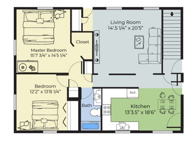 Modelo de apartamento: 1 BedroomDesde $1,7991 Dormitorio, 1 Baño, 539 sq ftNo Disponible![]()