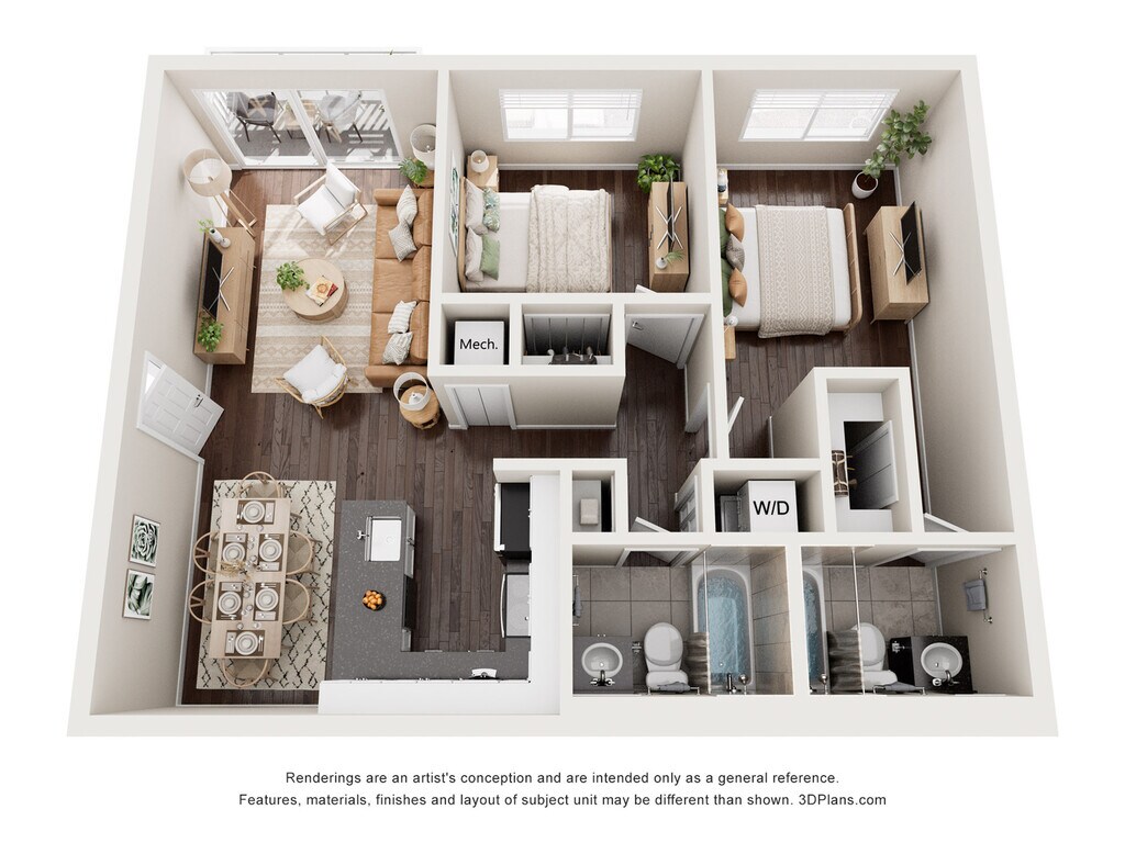 Modelo de apartamento: B2$1,9502 Dormitorios, 2 Baños, 900 sq ftDisponible AhoraLos planos son representaciones artísticas. Todas las dimensiones son aproximadas. El producto y las especificaciones reales pueden variar en tamaño o detalle. No todas las características están disponibles en cada vivienda en alquiler. Por favor, consulta con un representante para obtener más detalles.