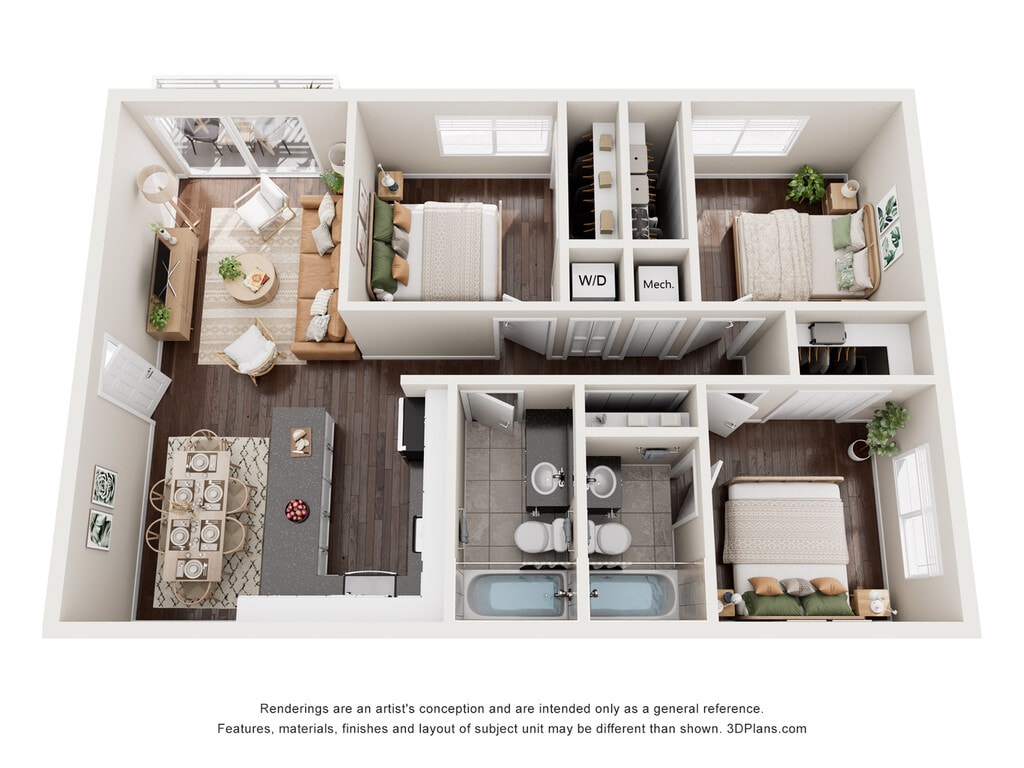Modelo de apartamento: C3$2,2003 Dormitorios, 2 Baños, 1200 sq ftDisponible AhoraLos planos son representaciones artísticas. Todas las dimensiones son aproximadas. El producto y las especificaciones reales pueden variar en tamaño o detalle. No todas las características están disponibles en cada vivienda en alquiler. Por favor, consulta con un representante para obtener más detalles.