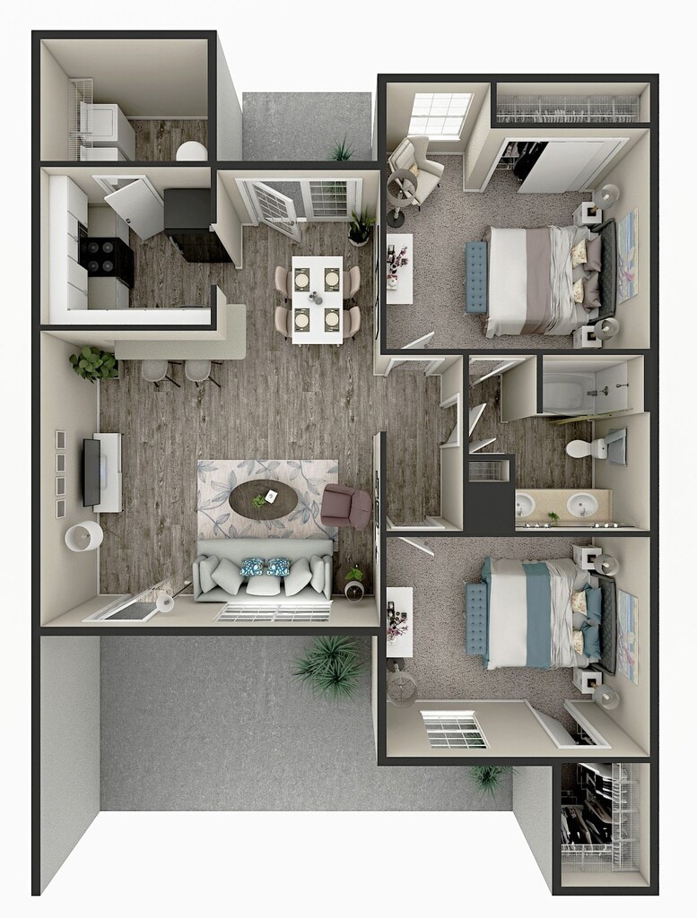 2 Dormitorios, 1 Baño, 913 pies²Disponible AhoraGalería del Modelo
