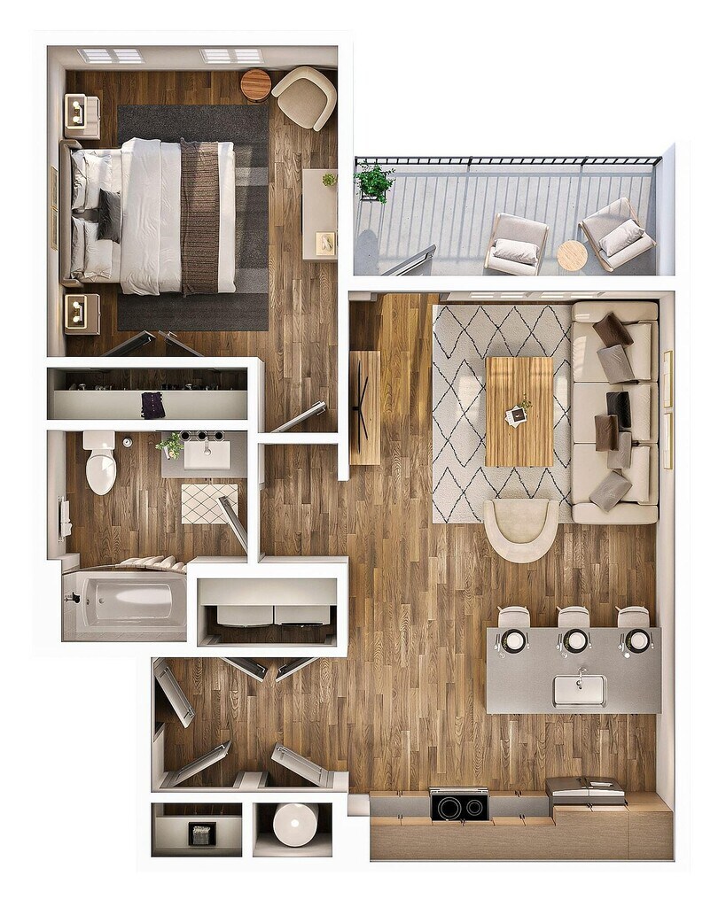 1 Dormitorio, 1 Baño, 689 pies²Disponible Oct 25Galería del Modelo