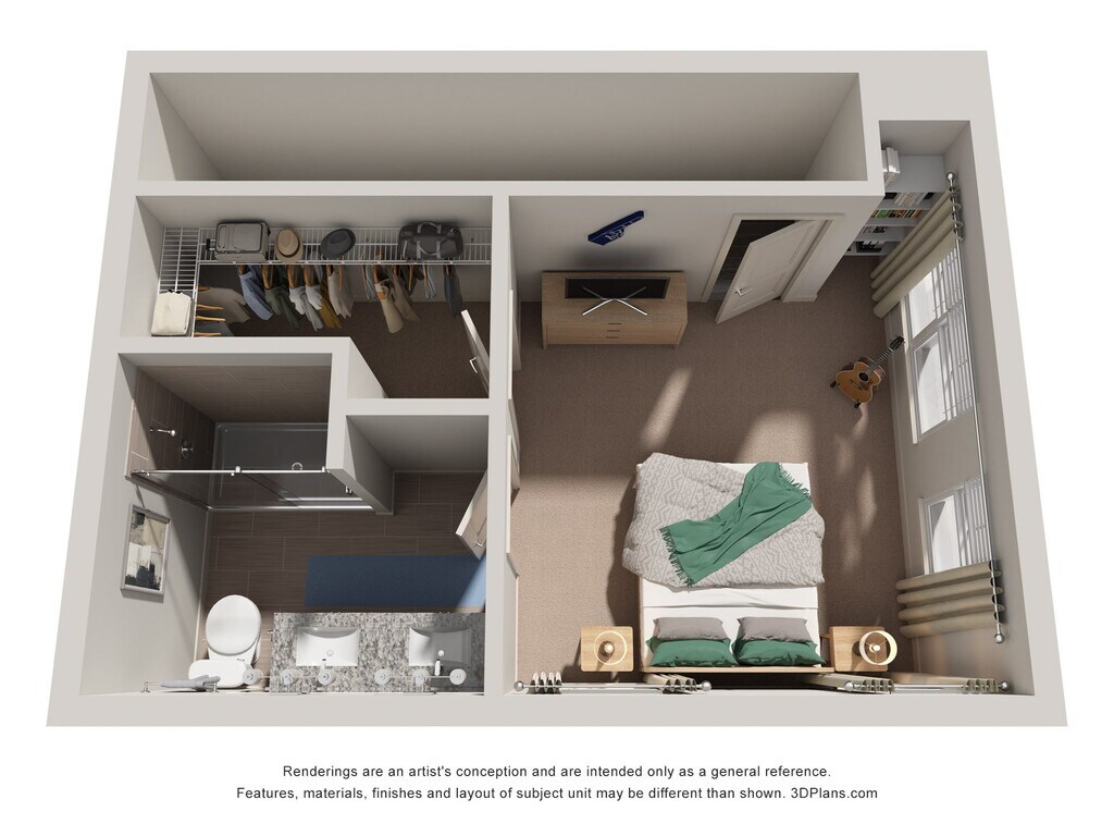 Cyan - Plano 1 Unidad de apartamento: 3310Modelo de apartamento: Cyan$1,448Estudio, 1 Baño, 577 sq ftDisponible December 3, 20251 Dormitorio