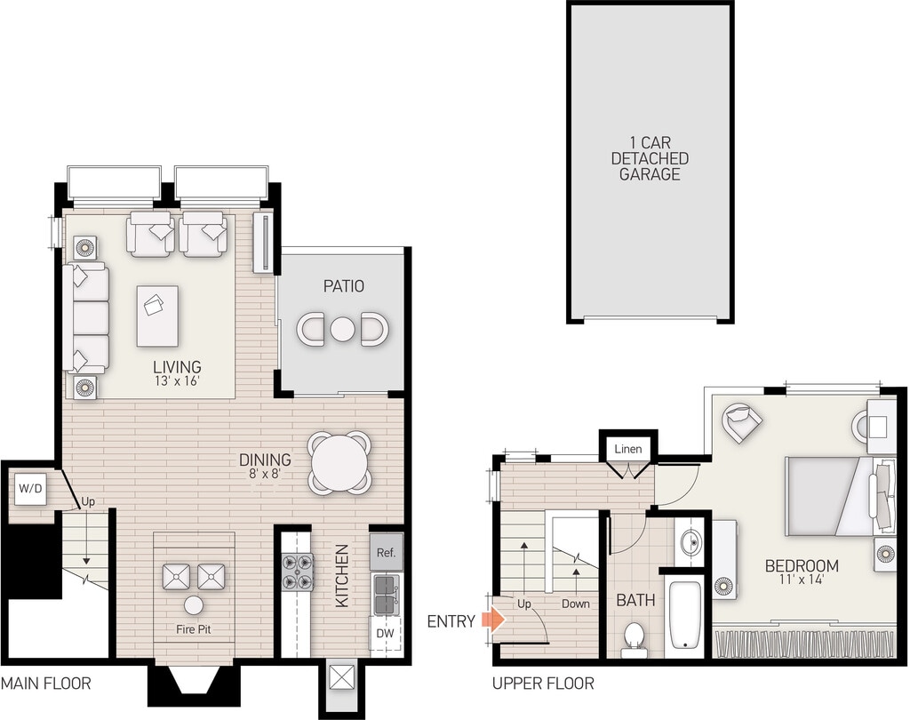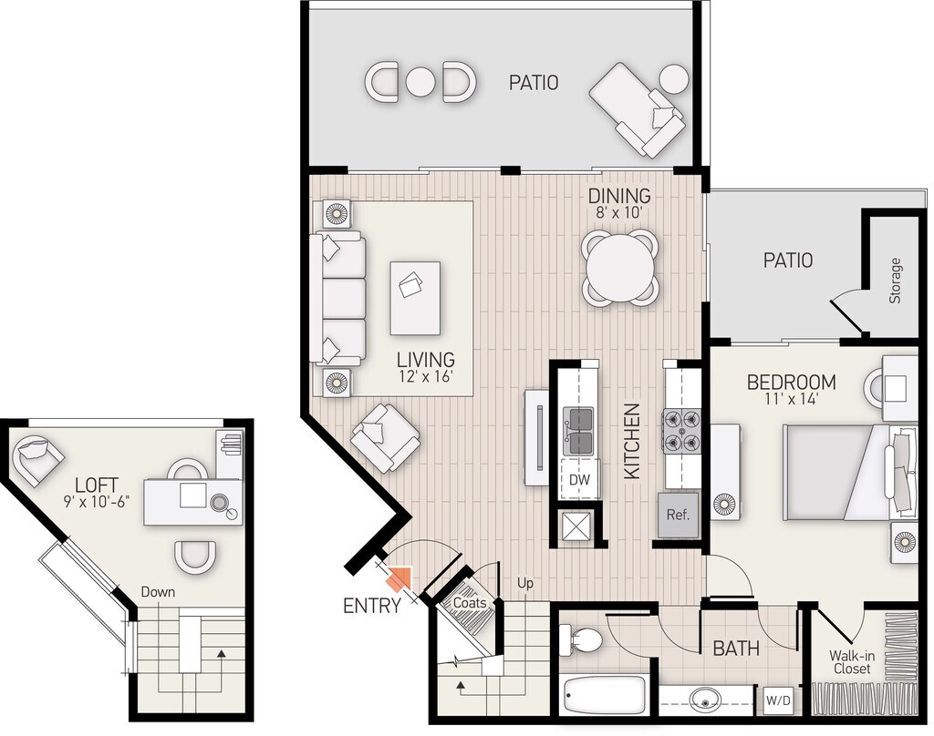 1 Dormitorio, 1 Baño, 901 pies²Galería del Modelo