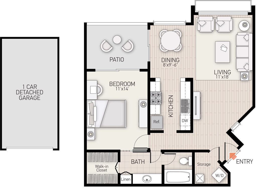 1 Dormitorio, 1 Baño, 822 pies²Disponible AhoraEl más baratoEsta opción tiene los precios más bajos para este modeloGalería del Modelo