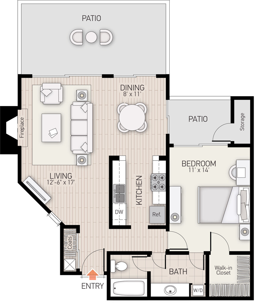 1 Dormitorio, 1 Baño, 1113 pies²El más grandeEsta opción tiene las unidades más grandes para este modeloGalería del Modelo