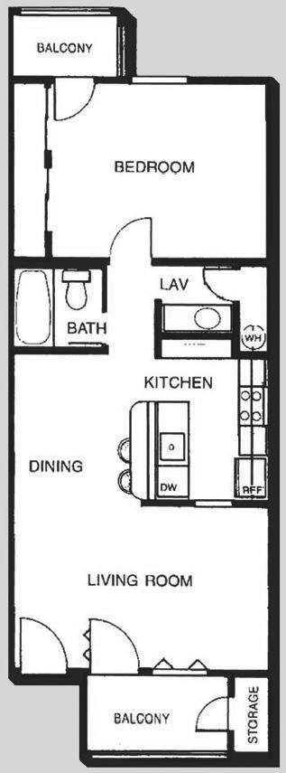 Modelo de apartamento: DoveDesde $8051 Dormitorio, 1 Baño, 456 sq ftDisponible Ahora![]()