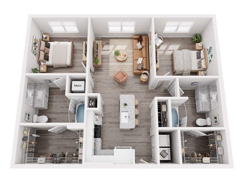 Modelo de apartamento: B3Llame para Precios2 Dormitorios, 2 Baños, 1165 sq ftNo Disponible- Los planos de la planta son una interpretación artística. Todas las dimensiones son aproximadas. Los tamaños o el detalle del producto real y sus especificaciones pueden variar. No todas las características están disponibles en todos los hogares para rentar. Los precios y la disponibilidad están sujetos a cambios. El alquiler que se muestra es mensual. Se pueden aplicar ciertos cargos, por ejemplo, entrega de paquetes, recolección de basura, agua, servicios, etc. Depositos varian. Consulta a un representante para conocer detalles. ![]() - B3 - Plano 1