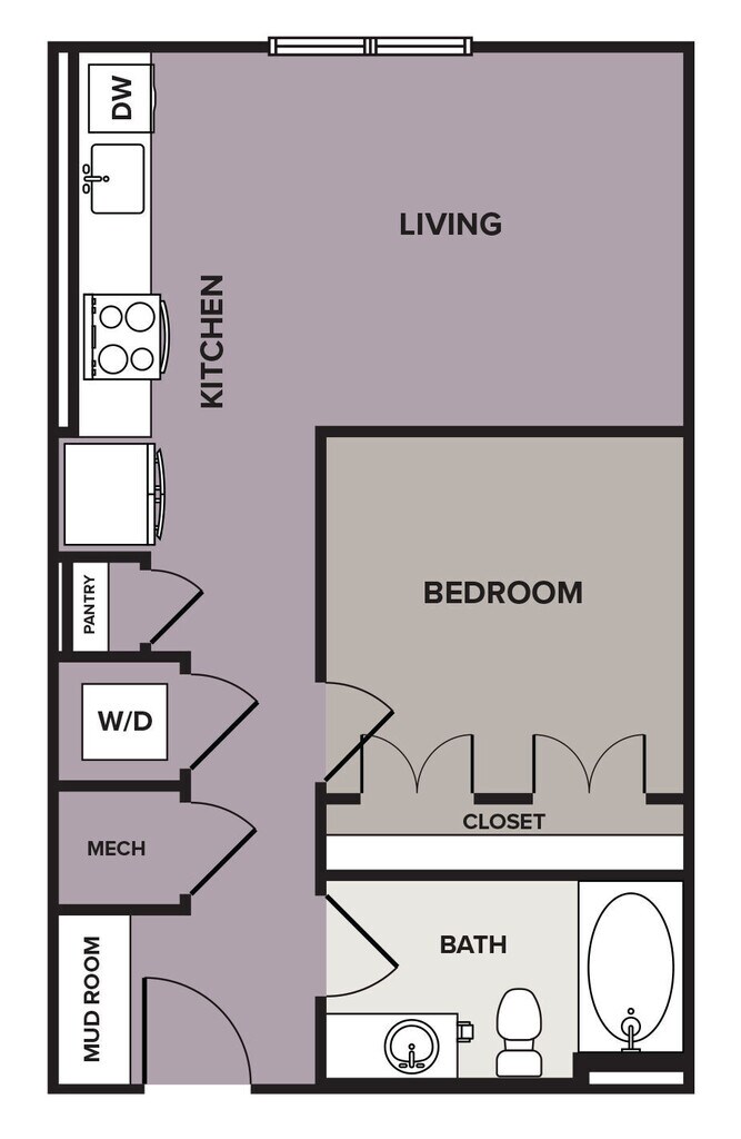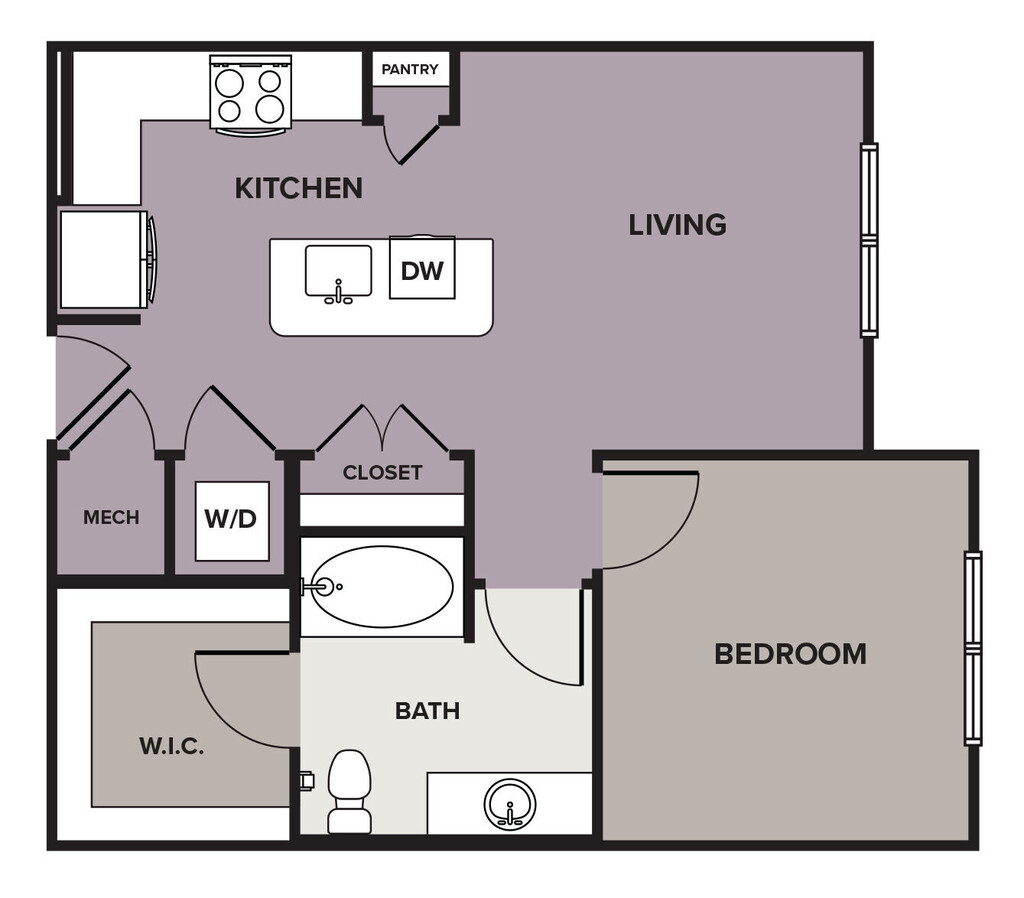 1 Dormitorio, 1 Baño, 844 pies²Disponible AhoraEl más grandeEsta opción tiene las unidades más grandes para este modeloGalería del Modelo