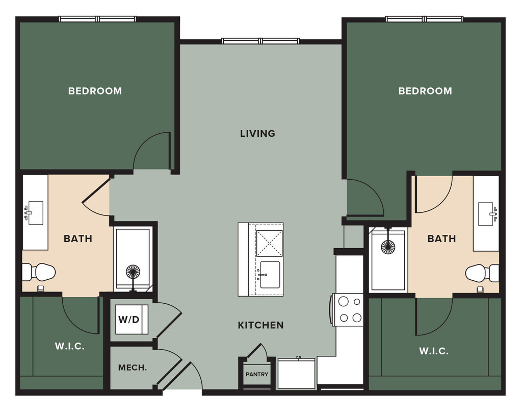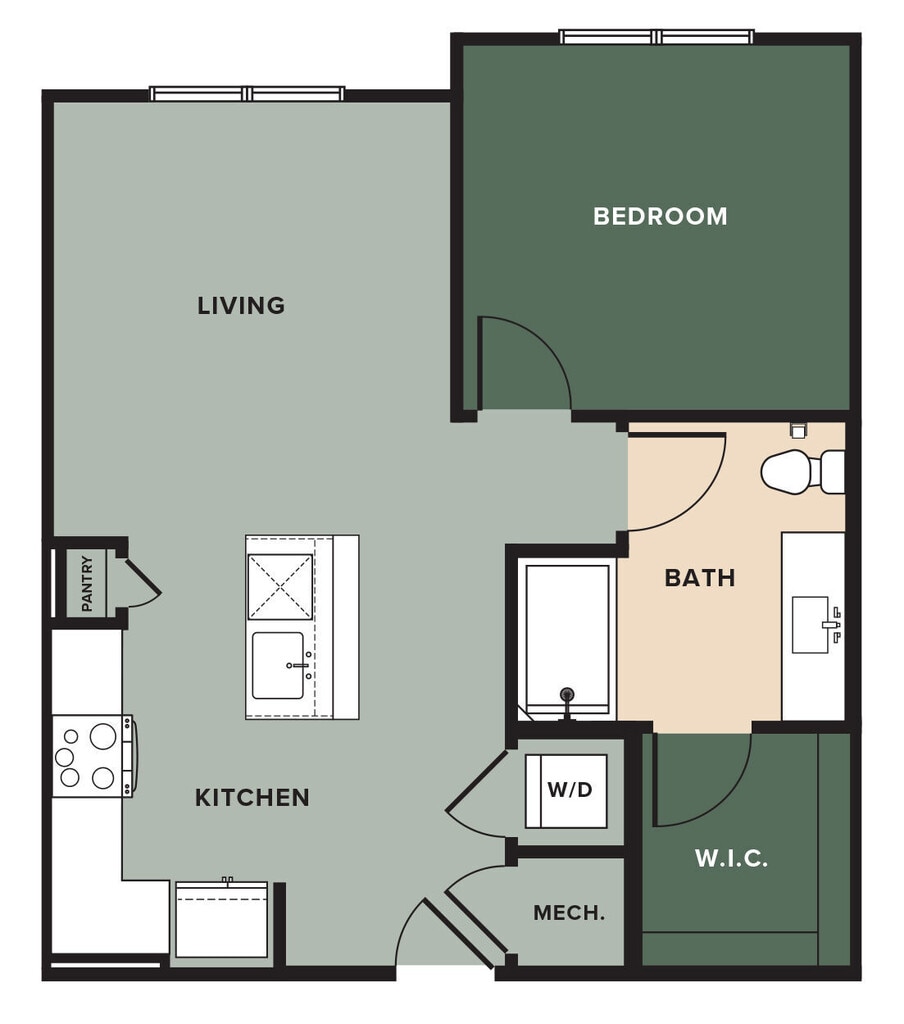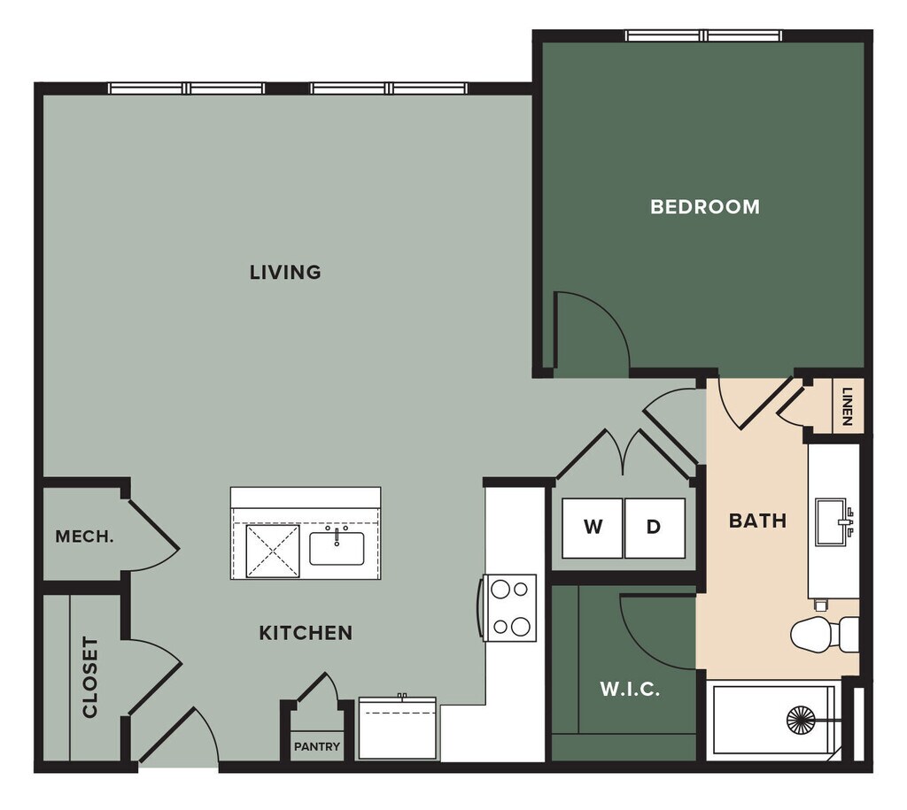 1 Dormitorio, 1 Baño, 830 pies²Disponible AhoraEl más grandeEsta opción tiene las unidades más grandes para este modeloGalería del Modelo