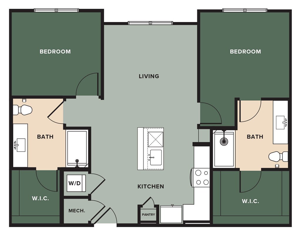 Modelo de apartamento: B2Desde $1,4492 Dormitorios, 2 Baños, 1174 sq ftDisponible AhoraLos planos de la planta son una interpretación artística. Todas las dimensiones son aproximadas. Los tamaños o el detalle del producto real y sus especificaciones pueden variar. No todas las características están disponibles en todos los hogares para rentar. Los precios y la disponibilidad están sujetos a cambios. El alquiler que se muestra es mensual. Se pueden aplicar ciertos cargos, por ejemplo, entrega de paquetes, recolección de basura, agua, servicios, etc. Depositos varian. Consulta a un representante para conocer detalles.